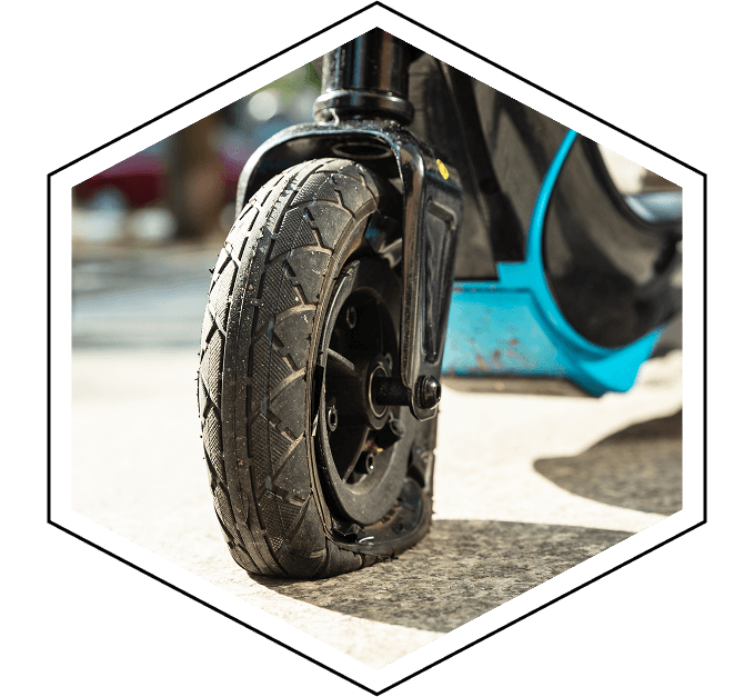 Solid Tires, aka Airless Tires, Run Flats, and Honeycomb are all names referring to a tire that eliminates the use of an innertube. The void left from the innertube is filled by the rubber. That is where they get the name, “solid tires”. The major benefit of getting solid tires is they are non pneumatic (take no air) so you will never have to deal with a pesty flat tire again.